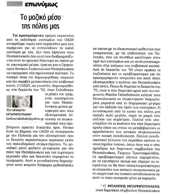 Η άποψη του Μπάμπη Μπαρμπουνάκη για τον ΟΑΣΘ:
