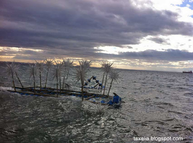 από την άτυχη στιγμή του καθ΄όλα όμορφου πλωτού Χριστουγεννιάτικου δέντρου, που ...ατύχησε λόγω των θυελλωδών ανέμων: