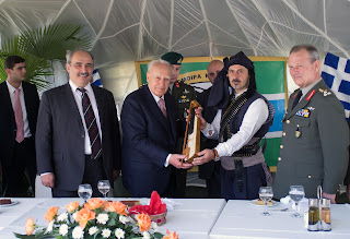 Τον Πρόεδρο της Δημοκρατίας και τον Υφυπουργό Υγείας και Κοινωνικής Αλληλεγγύης υποδέχθηκαν στο στρατόπεδο ο Στρατηγός Διοικητής του Β΄Σ.Σ. κ. Κωνσταντίνος Τόπης και ο Διοικητής της Β. Μοίρας Ανχης Γεώργιος Συρμόπουλος, Παραβρέθηκαν ακόμη ο Μητροπολίτης Βεροίας κ. Παντελεήμονας, ο Αντιπεριφεριάρχης Ημαθίας, οι τοπικοί βουλευτές και ο Δήμαρχος Νάουσας.