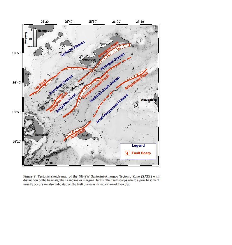 Ο βυθός του Αιγαίου ανάμεσα στη Σαντορίνη και στην Αμοργό κρύβει συνολικά πέντε μεγάλα ρήγματα μήκους άνω των 20