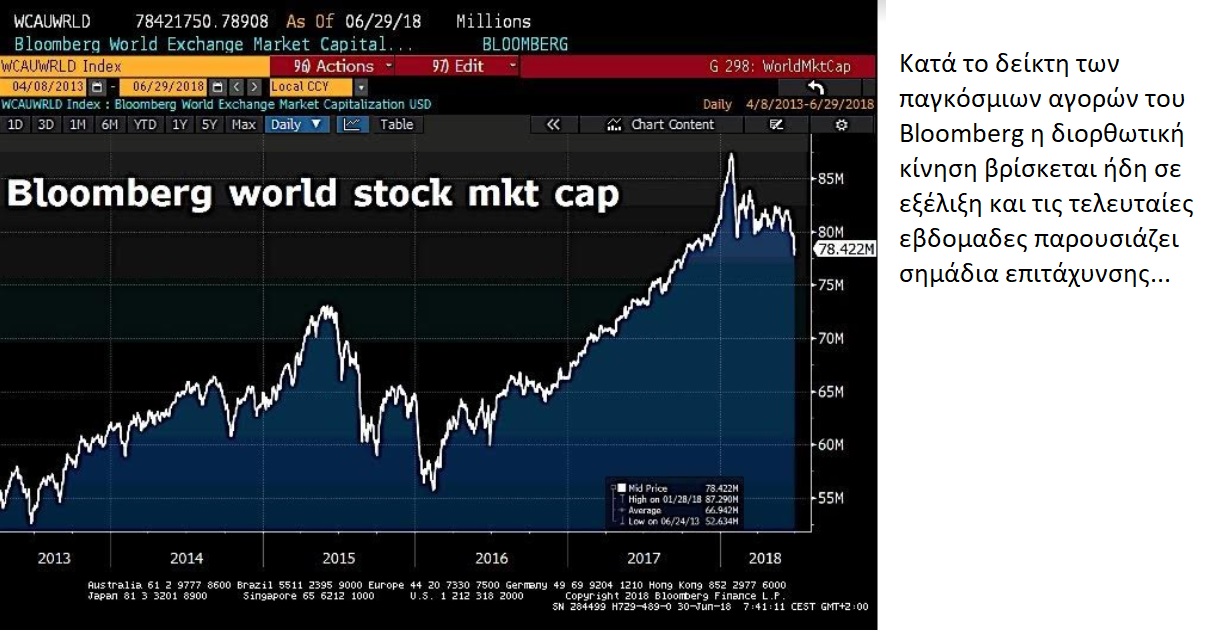 Το κλίμα όμως στις διεθνείς αγορές έχει αρχίσει να αλλάζει και αν κοιτάξει κάποιος τον παγκόσμιο δείκτη των χρηματιστηρίων του Bloomberg η επόμενη διόρθωση βρίσκεται ήδη σε εξέλιξη. Τους επόμενους μήνες ίσως δούμε την είσοδό της στην τελική και πιο ισχυρή της φάση.
