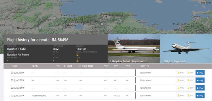 Ο κωδικός αυτός πτήσης είναι καταγραμμένος σε αεροσκάφος της ρωσικής Πολεμικής Αεροπορίας, σύμφωνα με τον ιστότοπο Flightradar24 και αντιστοιχεί με το αεροσκάφος που έφτασε στο αεροδρόμιο του Καράκας τον Μάρτιο.