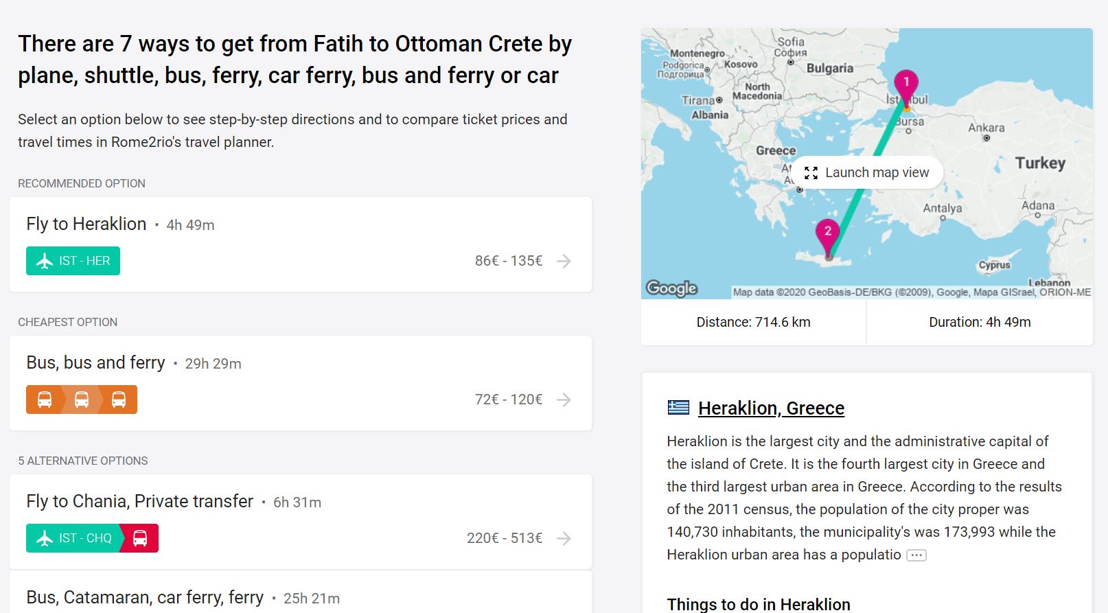 Όσον αφορά το “Οθωμανική Κρήτη”, αυτό εμφανίζεται σε αναζήτηση ταξιδιού από την Κωνσταντινούπολη προς την Κρήτη, με την πλατφόρμα να διαφημίζει… «7 τρόπους να φτάσετε από το Fatih (σ.σ δήμος της Κων/πολης) στην Οθωμανική Κρήτη…»!