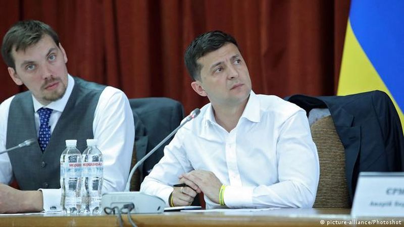Στα αριστερά του Ζελένσκι ο πρώην πρωθυπουργός της Ουκρανίας Ολεκσέϊ Χοντσάρουκ που τόλμησε να τα βάλει με τον Κολομοίσκι.Τον δρόμο της εξόδου από την αρχική κυβέρνηση του Ζελένσκι ακολούθησε και ο νεαρός δικηγόρος Ολεκσέϊ Χοντσάρουκ που είχε στεφθεί πρωθυπουργός της Ουκρανίας. Σύμπτωση μάλλον το γεγονός ότι πριν να του δείξει την πόρτα της εξόδου ο Ζελένσκι ο νεαρός πρωθυπουργός πήγε να τα βάλει με τα συμφέροντα του Κολομοίσκι. Ο Κονσταντίν Σόρκιν τονίζει: ‘’Η κυβέρνηση του Χοντσάρουκ είχε την πρόθεση να είναι μια φιλοδυτική κυβέρνηση τεχνοκρατών, ικανή να καταπραύνει τους φόβους των ξένων πιστωτών και να προσελκύσει ξένους επενδυτές. Ο Χοντσάρουκ τα πήγε καλά στο εξωτερικό αλλά πίσω στην Ουκρανία συγκρούστηκε με έναν εχθρό με μεγάλη επιρροή: τον ολιγάρχη Ιχόρ Κολομοίσκι. Η κυβέρνηση κράτησε μια αυστηρή στάση ενάντια στην προσπάθεια αναστροφής της εθνικοποίησης της πρώην τράπεζας του Κολομοίσκι, της PrivatBank, και όπως ήταν φυσικό δέχθηκε έπειτα τα πυρά της μιντιακής αυτοκρατορίας του ολιγάρχη. Η απόρριψη του Χοντσάρουκ θα προκαλέσει σημαντική φθορά στην εικόνα του Ζελένσκι στην Δύση.’’