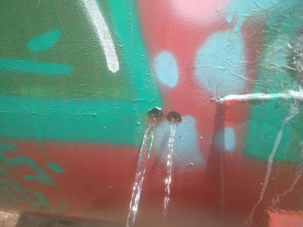 Το μεσημέρι δυστυχώς, η υπηρεσία διαπίστωσε ότι στην συγκεκριμένη δεξαμενή υπάρχει εκ νέου διαρροή νερού από δύο νέες τρύπες. Εξετάζεται η πιθανότητα δολιοφθοράς ή ακόμα και το ενδεχόμενο η δεξαμενή να αποτέλεσε στόχο σκοποβολής.